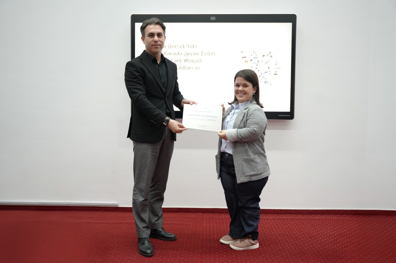 U svom izlaganju, dr. Bračković istakla je da je utjecaj turskog jezika i kulture u Bosni i Hercegovini započeo dolaskom Turaka na ove prostore. Ova snažna kulturna povezanost, koja se posebno produbila prihvatanjem islama među Bošnjacima, dodatno je učvršćena i rodbinskim vezama. Vremenom su mnoge riječi turskog porijekla, povezane s mjestima, zanimanjima i društvenim životom, ušle u bosanski jezik i postepeno bile prihvaćene kao prezimena, od kojih su mnoga i danas u upotrebi. Među primjerima su prezimena poput Ćutahija, Adanalić i Izmirlić.